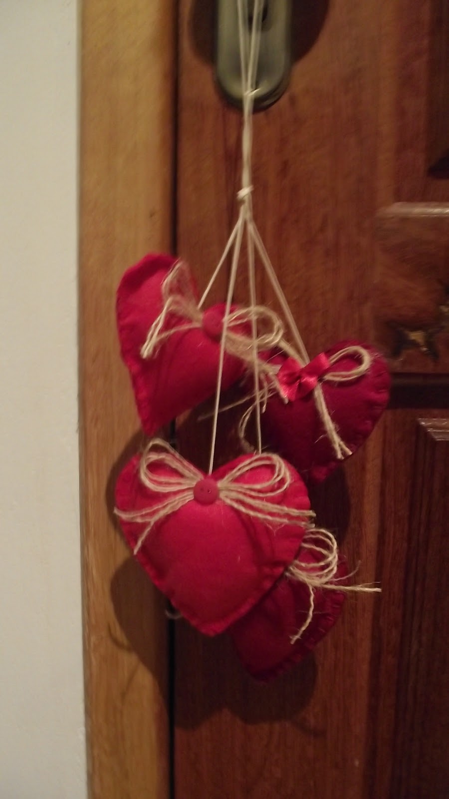 Confeccionados em feltro, com fitas e botões, esses corações deixam a maçaneta de sua casa muito linda.